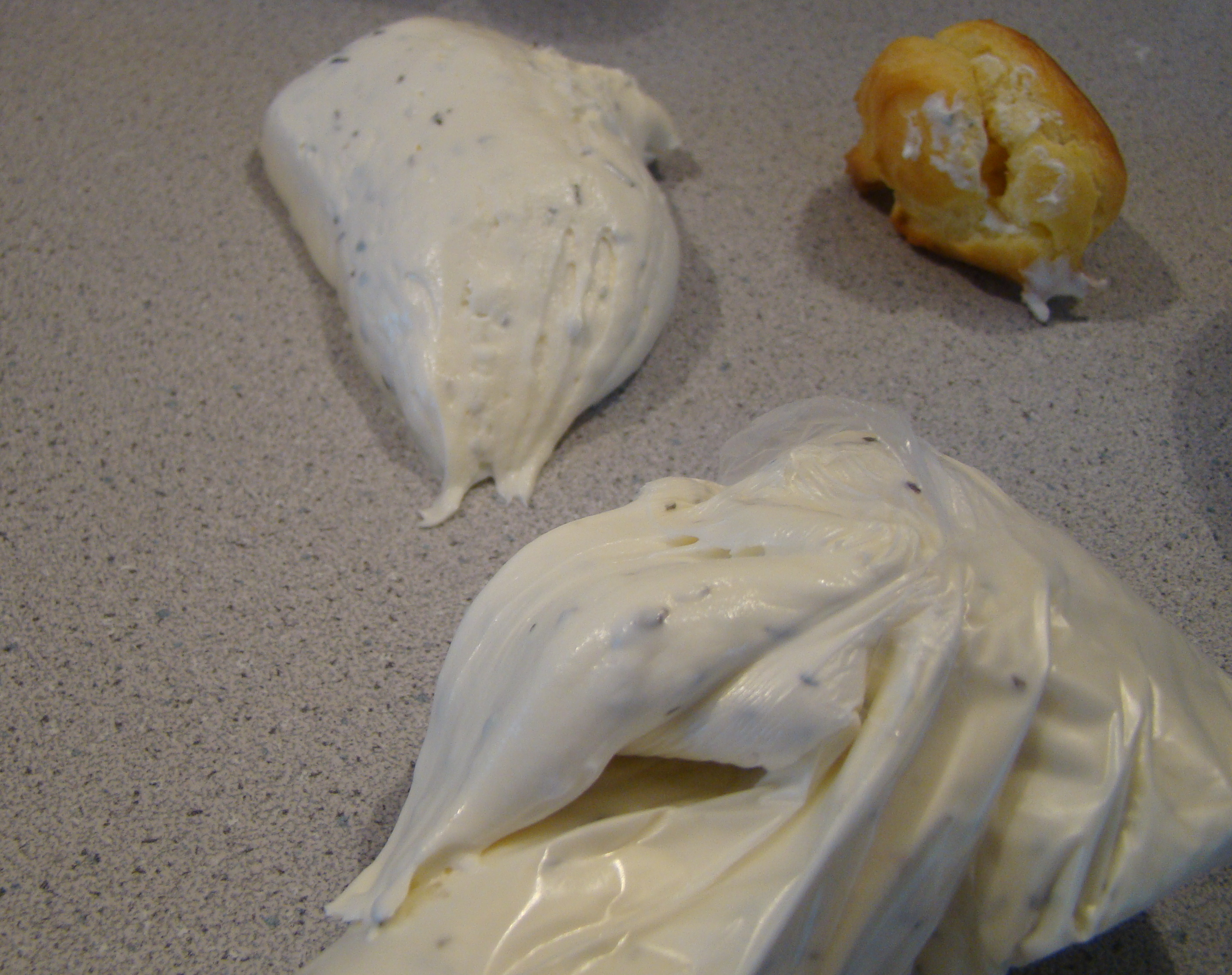 This week’s French Friday recipe is for goat cheese mini puffs. These are small savory cream puffs stuffed with an herbal goat cheese filling rather than pastry cream. Definitely intriguing.