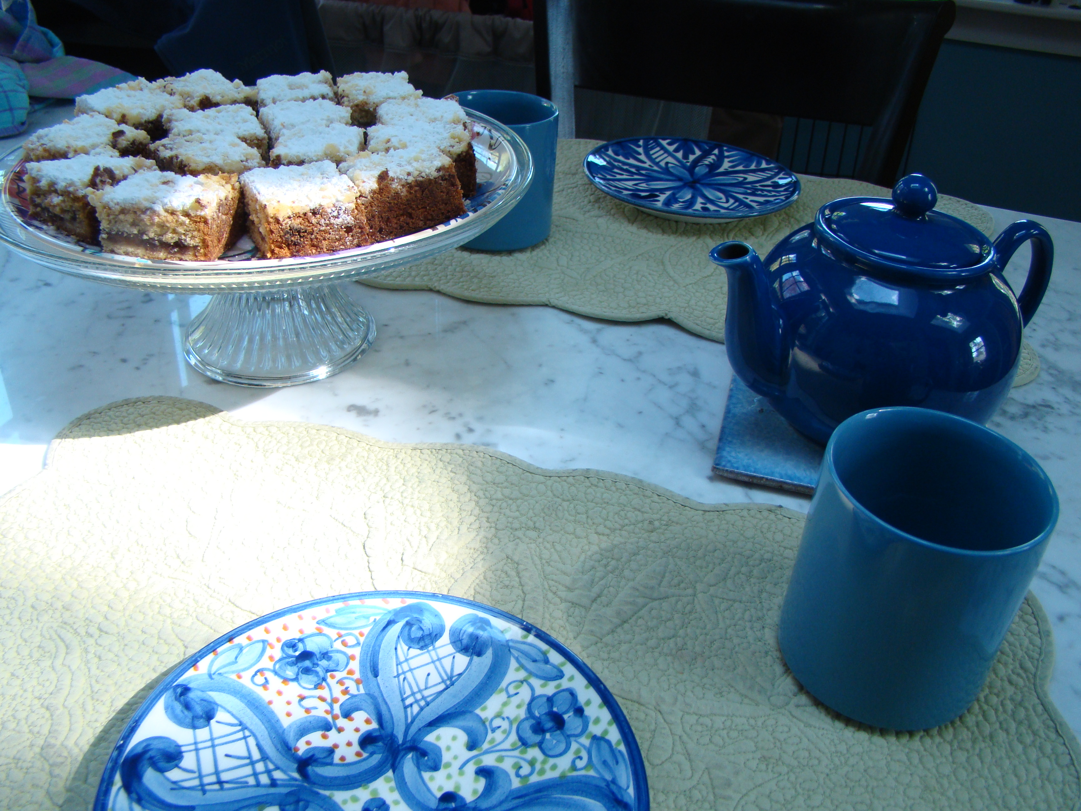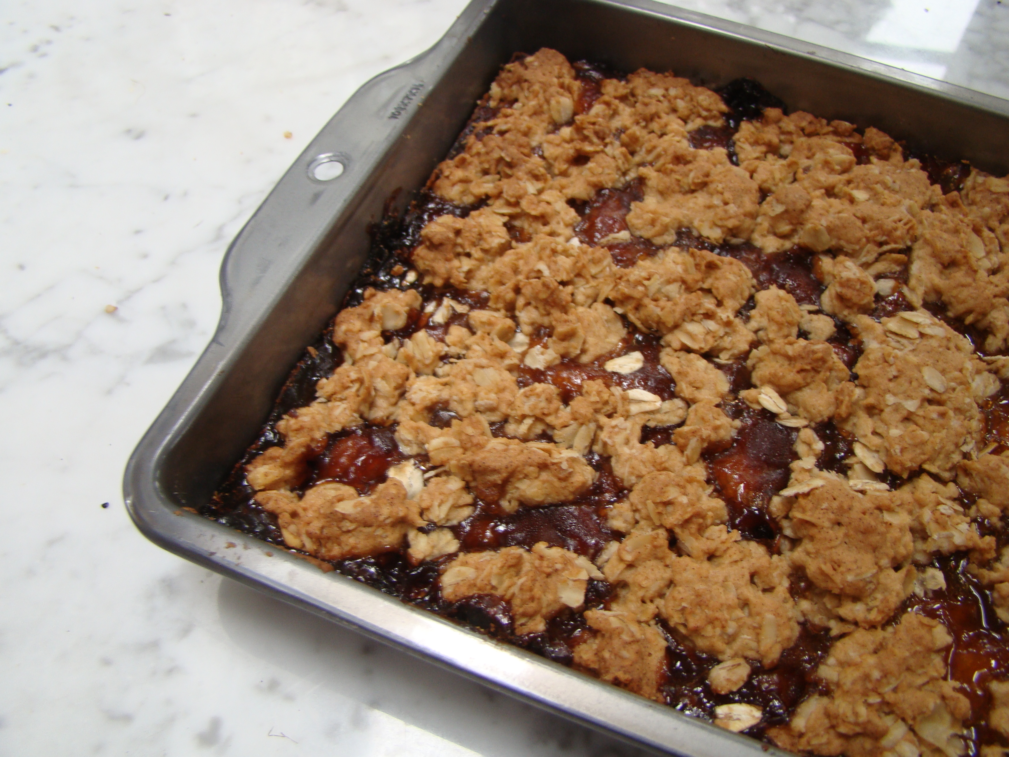 The technique was unusual as well. The dough was frozen briefly to firm it up. Then you grate it into the pan. This makes for a fluffier crumb.