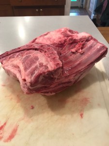 Our whole shoulder had some extra bony parts that needed to be separated (we think it was the top part of the ribs). They aren’t very meaty but will add lots of flavor to a lamb stock – coming to my kitchen some time soon.