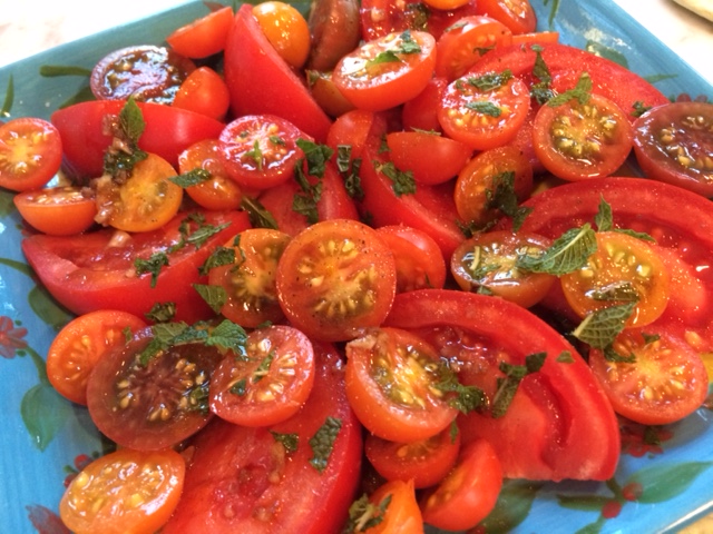With the earliest of tomatoes, I threw together Tomatoes with Thai Dressing. This, like so many of the recipes in this book, showcases top-notch vegetables with just the simplest of accompaniments, here, a light Asian-flavored dressing. I wouldn’t say the dressing tasted very Thai to me, or all that Asian. It was refreshing, and I did like the fresh mint sprinkled on top. This quick salad was nice enough, though not interesting enough for me to make again.