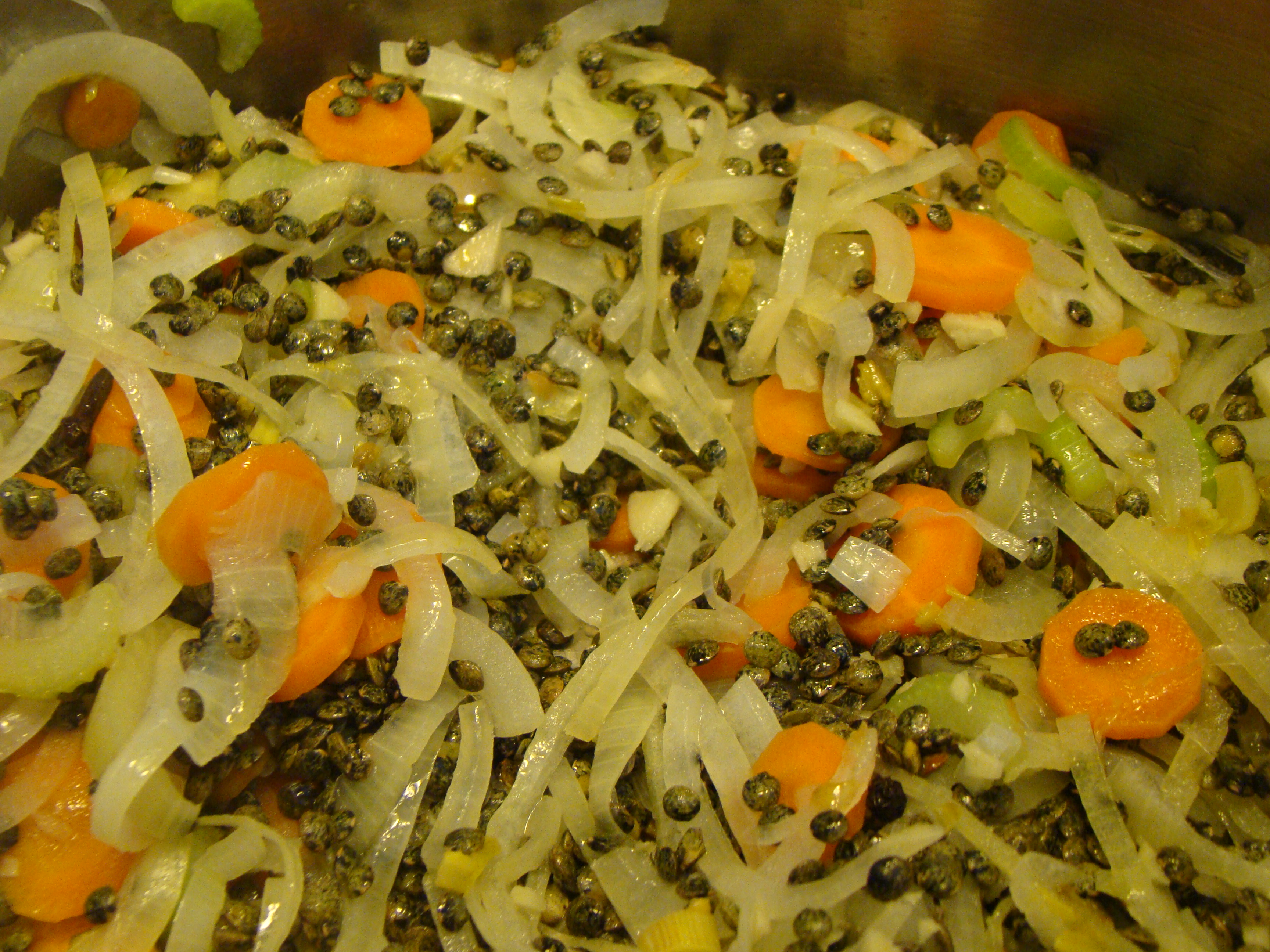For this version, first the lentils are boiled for two minutes, then drained before continuing. This is to give the lentils a cleaner flavor. I’m not sure I could tell the difference, but I might try it again.
