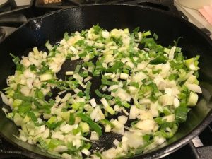 I sautéed the first batch of burgers in a non-stick cast-iron grill pan where it stuck in all the grooves. That happens with everything I cook in that pan, not sure why. For the second batch, I switched to my cast-iron skillet with much better results — more surface area to sear plus no sticking.