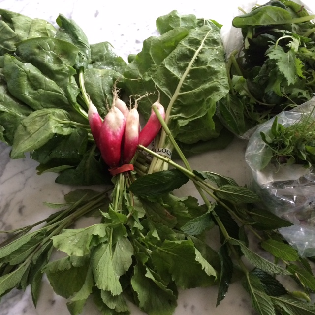 I’m big on using the “bonus” vegetables, the parts that many people discard or compost. This week, I consider the radish greens as a bonus. Not sure how I’ll use them, I cut them off the radishes, wrap them in a paper towel and store them with the other greens.