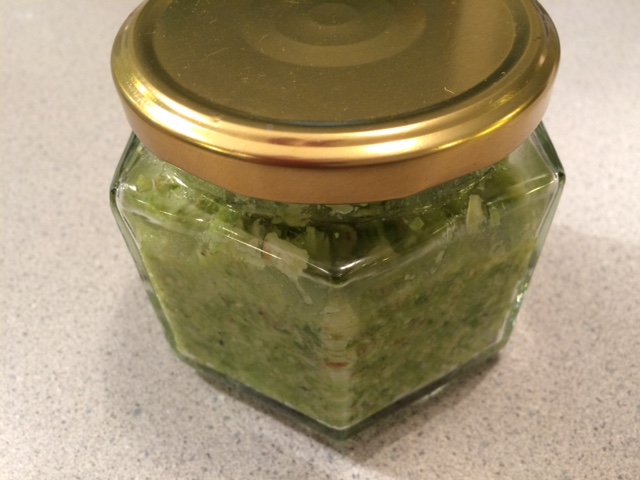 I added one stalk to the quiche. With the remainder, I made a green garlic pesto. I like garlic’s bite, but it could be mellowed by blanching the green garlic before making the pesto. The pesto is quite versatile. So far, I’ve used dollops of the pesto on pasta, mixed with mayonnaise to dress a potato salad, and as a condiment for pan-fried fish.