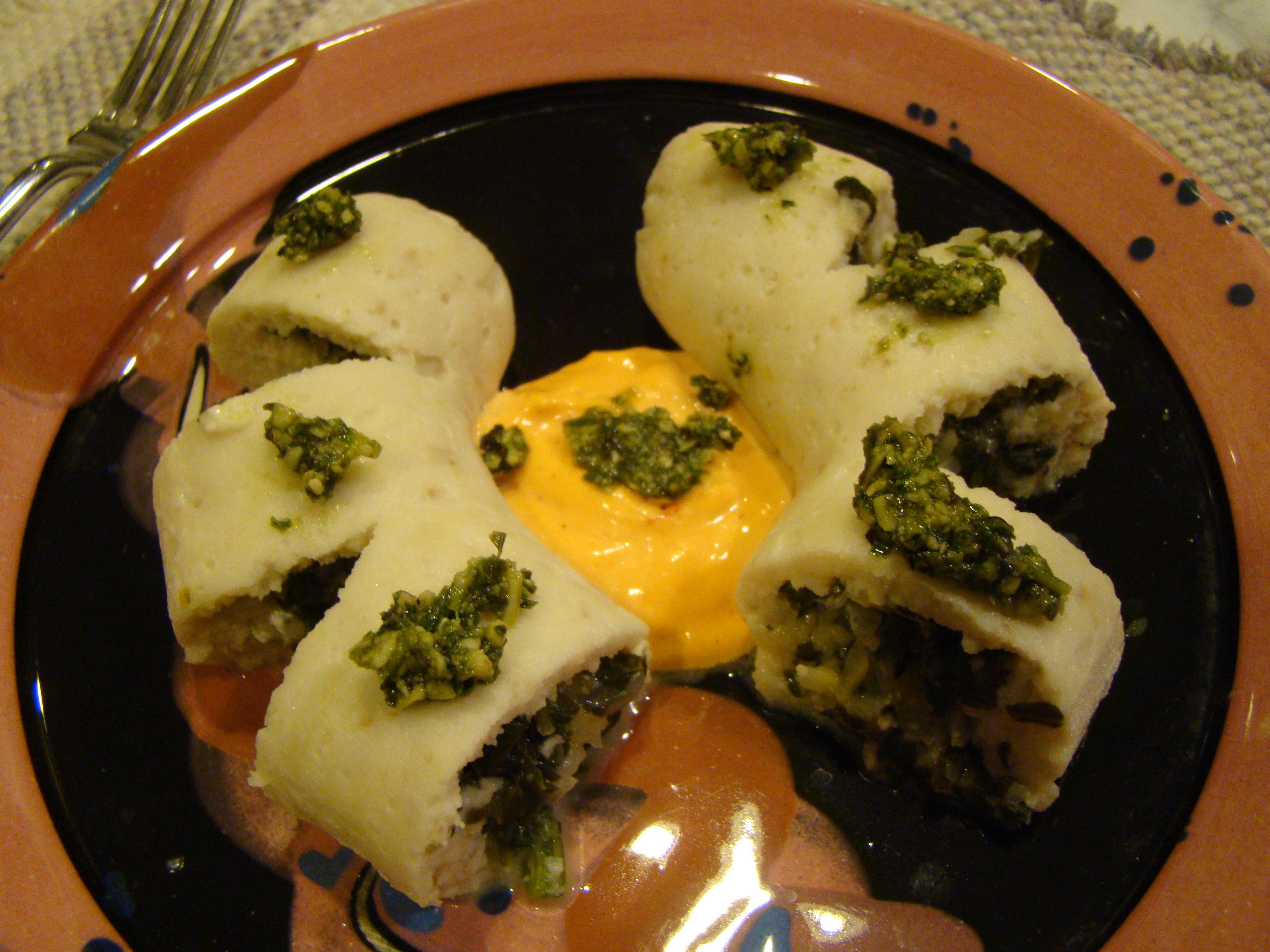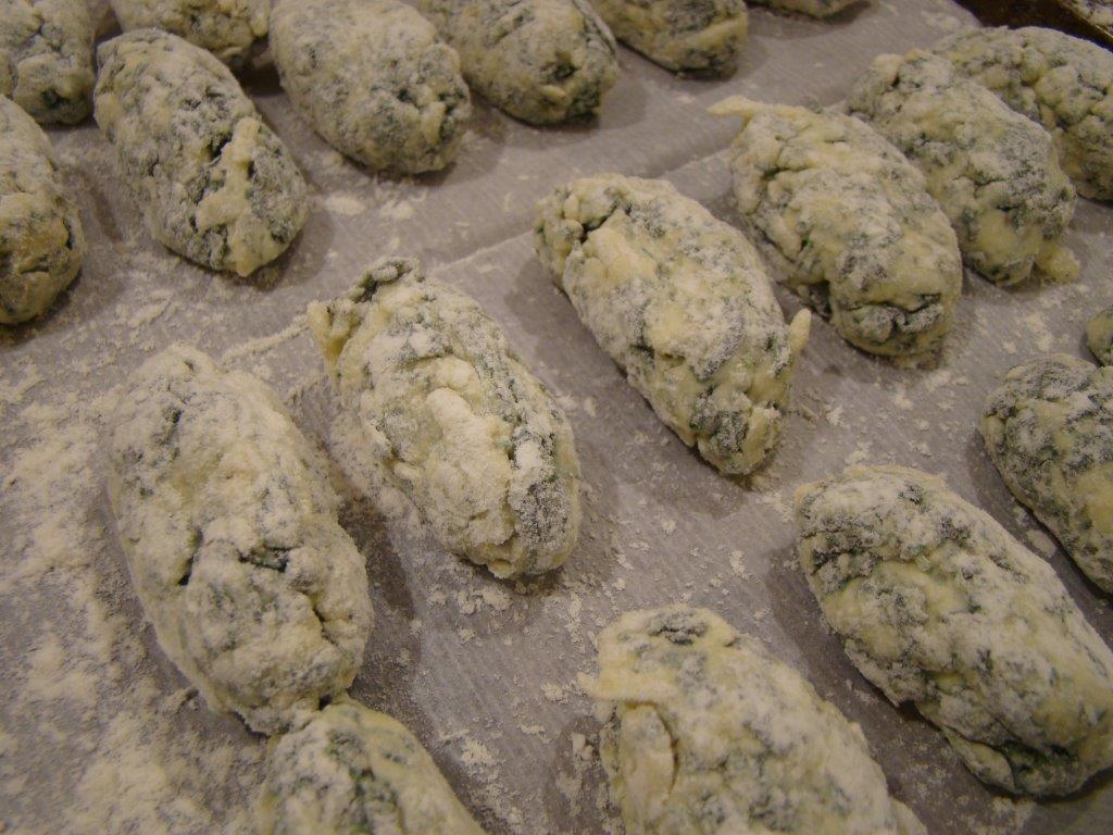 The storzapretis resemble the insides of ravioli, which might be the origin of the name gnudi, which means naked, like ravioli filling without its wrapper.