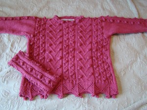 If you’ve stuck with me this far, here’s a picture of my latest knitting project, a sweater for my friend Lauren’s toddler. This was such fun to make. I’d love to make an adult sized version of the same sweater for myself.