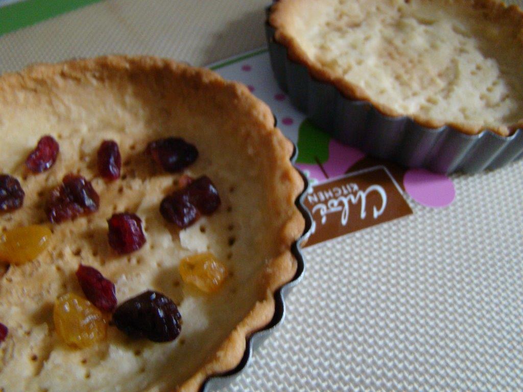 I minified this one: one third of the recipe to make 2 mini tarts. One with dried fruit for me, and one without for Howard.