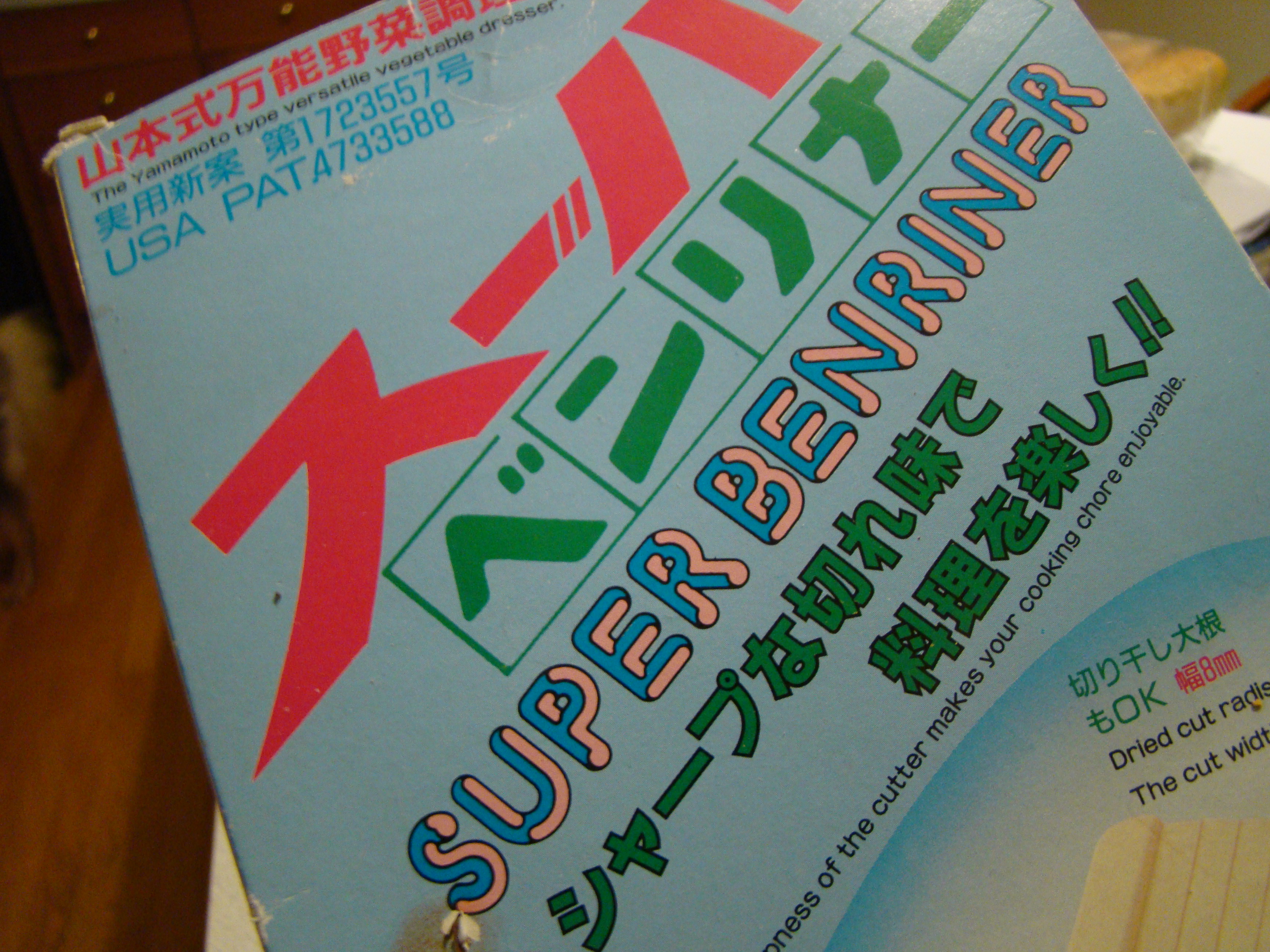 I got a chance to pull out my Super Benriner. I’ve had it for years, but seldom think to use it. As an accident-prone cook, any device that has “Watch Your Fingers Please” embossed on the plastic casing gives me pause.